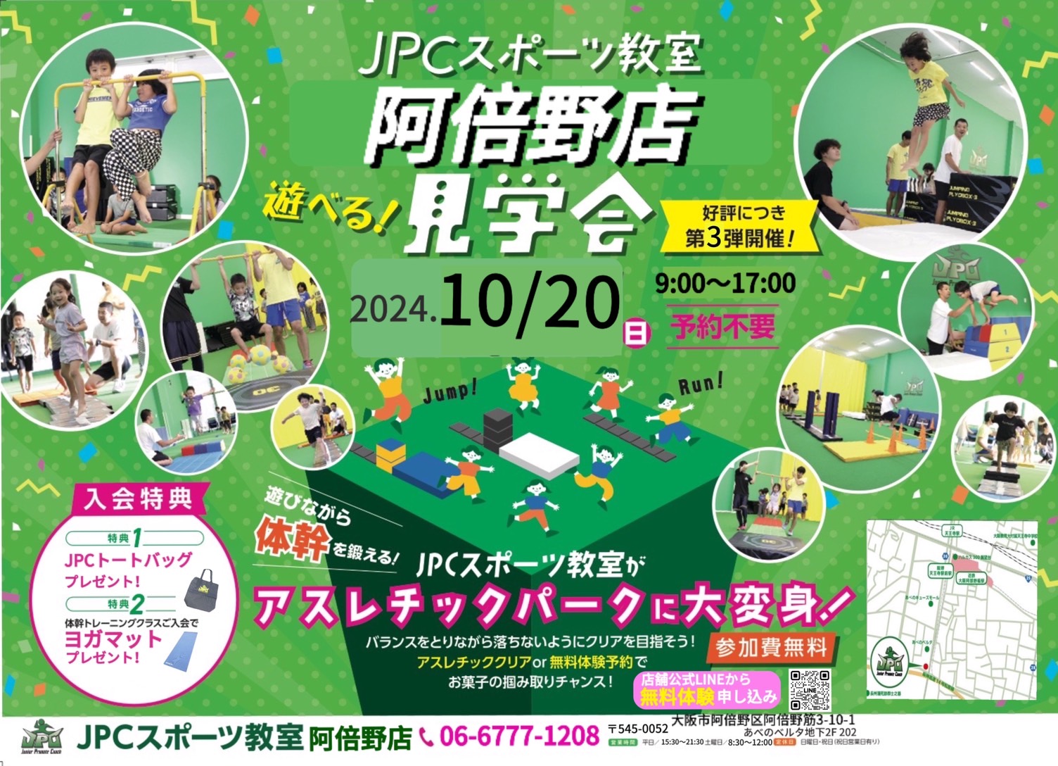 ご好評につき第3回体幹アスレチックパーク開催決定!! 今回もコースをクリアもしくは無料体験授業の予約でお菓子のすくい取りチャレンジができます😃 詳細は下記の通りです。 ◎日時 10/20(日)9:00...