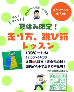 【夏休み限定!特別レッスン開催】 「足が速くなりたい」 「跳び箱が跳べるようになりたい」 そんなお子様は必見です👀✨     ☆走り方・跳び箱レッスンの詳細について☆ 日時:8月5日(火)~7日(木)...