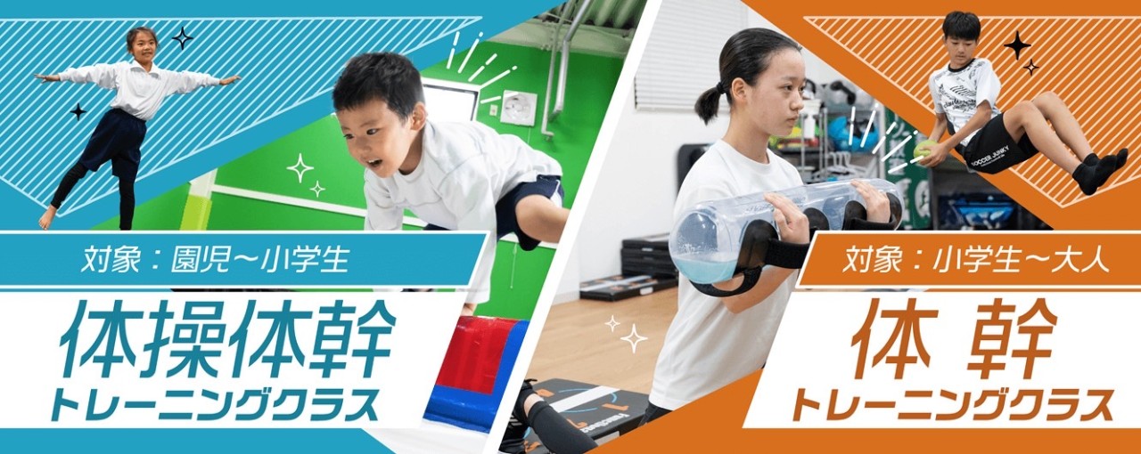 インナーマッスルの強化とアウター強化でキレのある動きに繋げていきます。ウォーターバッグなどを持ち、負荷が高くなっても骨盤の安定を作るためにフォームをしっかり意識して行います。チューブトレーニングでは体幹部と下半身の連動性を高め、マットトレーニングではしっかりと軸を作れるようにスピードとフォームを意識して行います。授業の中では体幹部・上半身・下半身と万遍なくトレーニングを行っていきますのでバランスよく鍛えられます。体操教室やダンス教室と比較される方も是非一度、無料体験に参加してみてください。