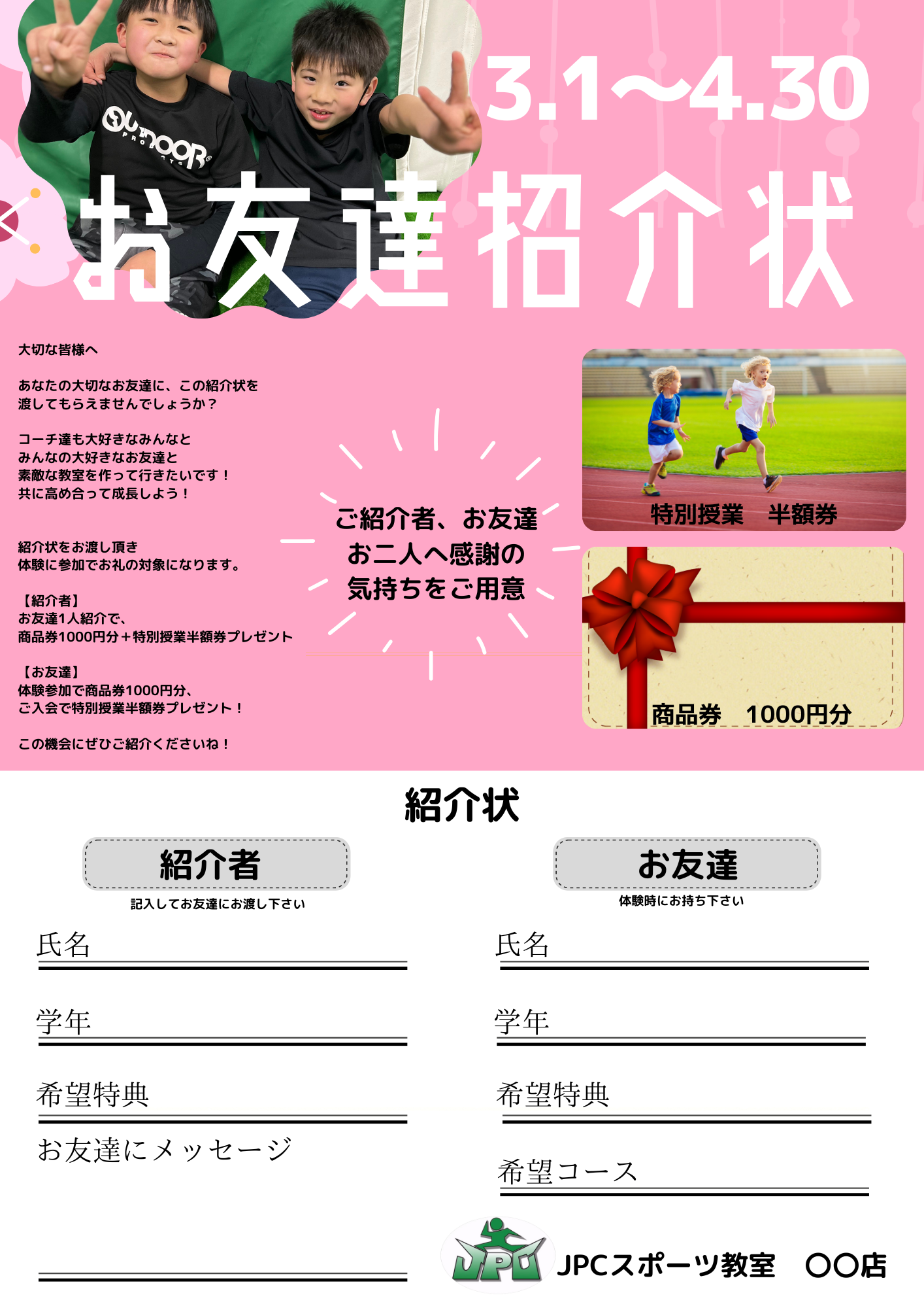 3月〜4月の取り組みでお友達を紹介してくださった方にお礼をお渡ししています! 会員様からたくさんのご紹介いただいています! 当教室が気になっている方で、お友達に会員様がいらっしゃる場合は是非、紹介状を...