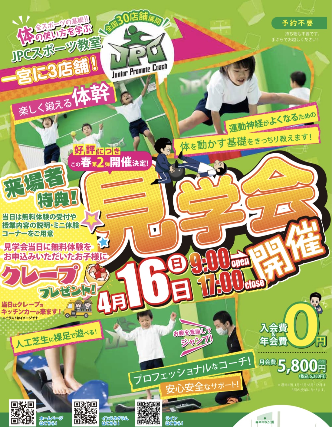3月にも行いました見学会大好評につき 4月16日も開催します‼️ 9:00〜17:00   気になっている方や 一度体験にきて迷っている方 誰でも気軽に予約なしでどうぞ❗️   クレープも無料でもらえ...
