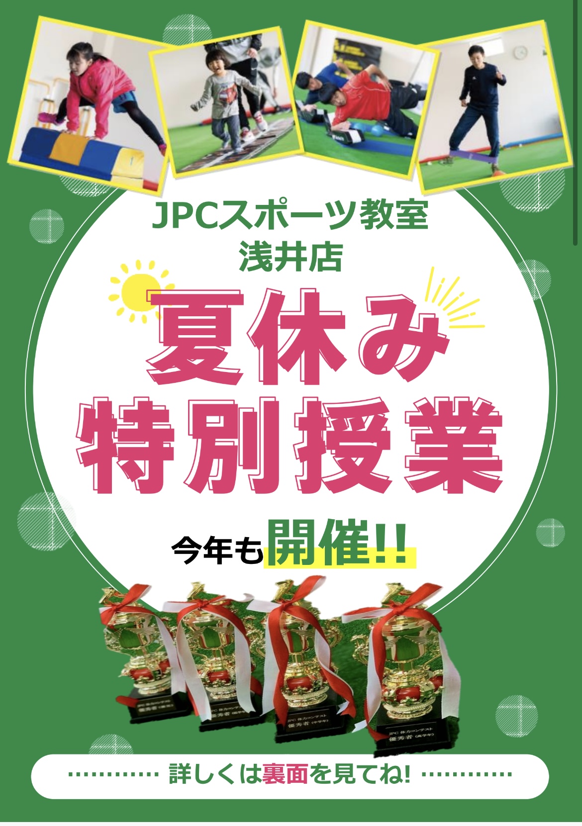 今年も夏休み特別授業開催いたします。 昨年、好評だった体力コンテストも行います💪 トロフィー目指して頑張ろう🏆   案内をだして1週間経ちましたが、予約が半分ほど埋まっています。 ご予約はお早めに。。...