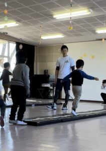 保育園は、出張レッスンで体幹に刺激の入る運動をたくさん行います!