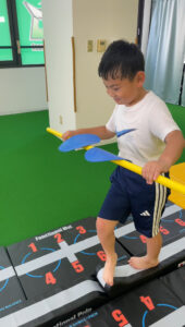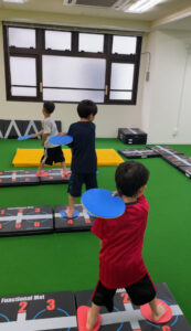 今日は最後に転がしドッチボールをしました! ボールをよく見てマットをよく見て!