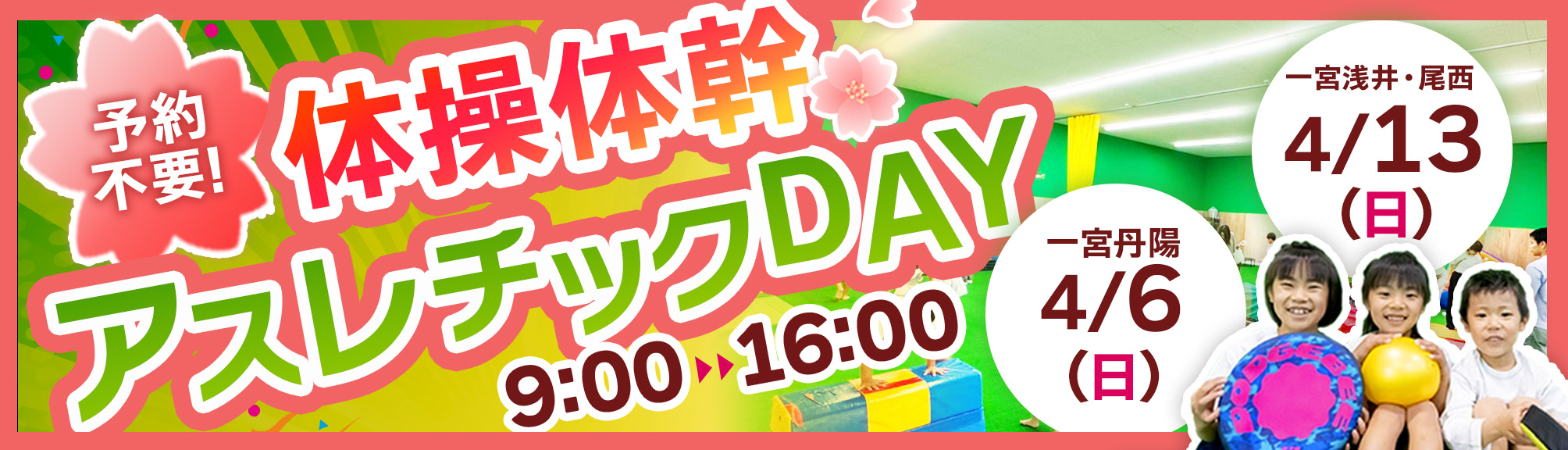 体操、体幹アスレチックDAYと題して内覧会を開催します! ・丹陽店 4月6日 ・浅井/尾西店 4月13日 9:00〜16:00   持ち物も予約も不要❗️ プチレッスンタイムもあり❗️ 教室を開放して...