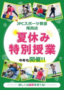こんにちは! JPCスポーツ教室尾西店です。 今年も夏休み特別授業をすることが決定しました!! 普段なかなか足を運べなかったそこのあなた! 夏休み期間を利用してJPCスポーツ教室尾西店に来て体を動かし...