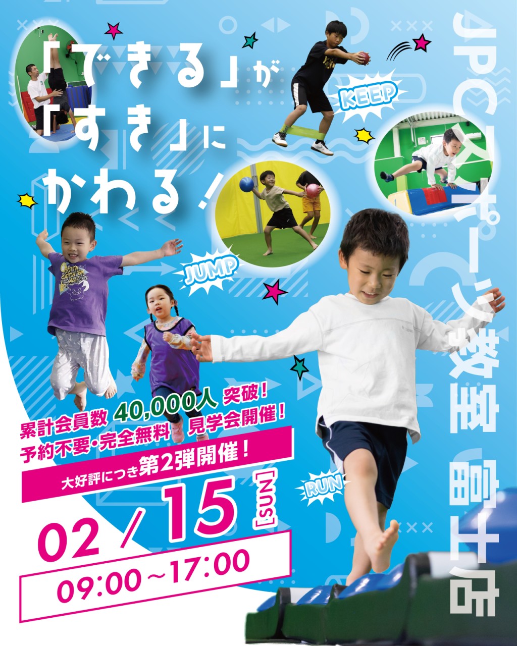 3月22日、JPCスポーツ教室富士店で無料アスレチックパーク開催。予約不要で遊びながら運動体験ができます。