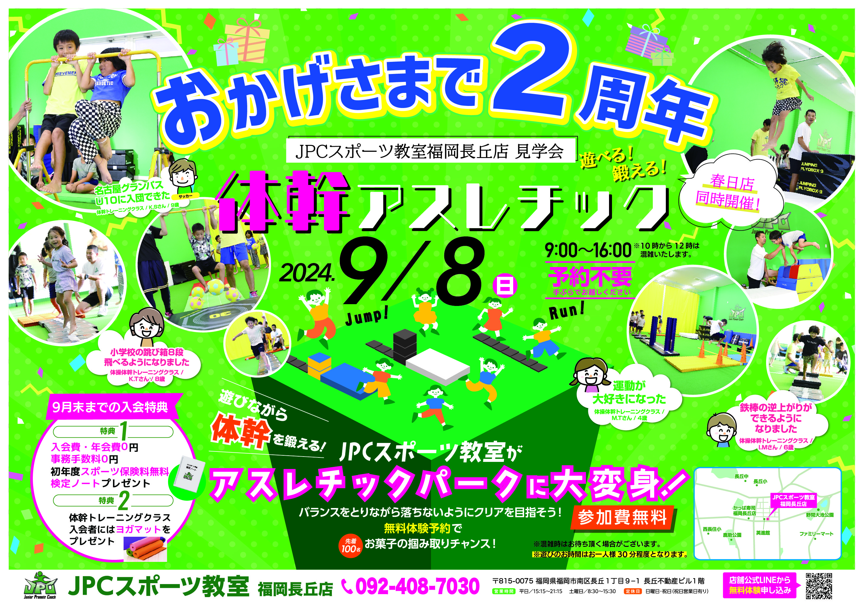 お陰様でJPCスポーツ教室福岡長丘店は2周年を迎えます✨️ 2周年を記念して 体幹アスレチックパーク&見学会 を開催致します❗️❗️ 開催日:9月8日(日) 開催時間:9:00~16:00 ※10時~...