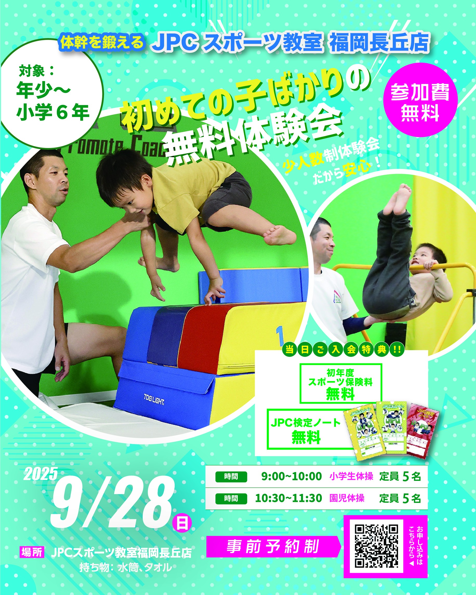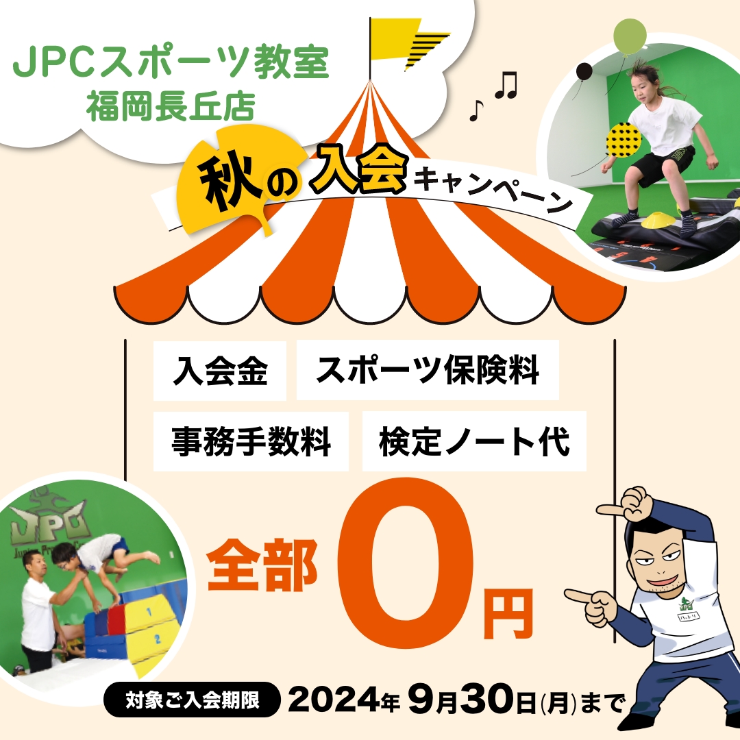 JPCスポーツ教室【福岡長丘店】 体幹アスレチックパーク&見学会 開催日:9月7日(日) 開催時間:【午前の部】9:00~12:00 【午後の部】12:30〜15:30 ※10時~12時は混雑致します...