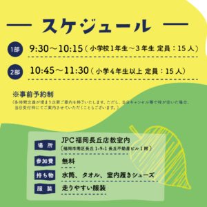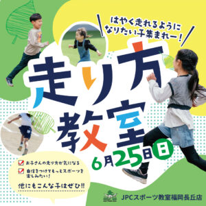 🏃♂️走り方教室🏃♀️ 開催👏 今からでも遅くない‼️正しい姿勢や走り方を知り、速くてカッコいい走りを身につけませんか❓日時: 6月25日(日) 場所: JPCスポーツ教室長丘店 費用: 無料 時間: 9:30〜10:15 対象:小学校1年生~3年生 10:45〜11:3 対象:小学校4年生以上 ※各クラス先着15名になります。どなたでもご参加頂けます!