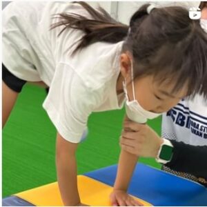 跳び箱は、手で体を支え、体重移動をし跳び越えるという動きがポイントになります。