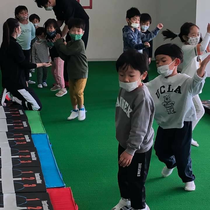 足はマーカーの上でグージャンプ! 手は赤色の所にしっかりタッチ! 写真はありませんが、お友達がやっているところもしっかり見て 上手にできた後には拍手を送ってくれる🎶 自然にでる拍手や、お友達を賞賛でき...