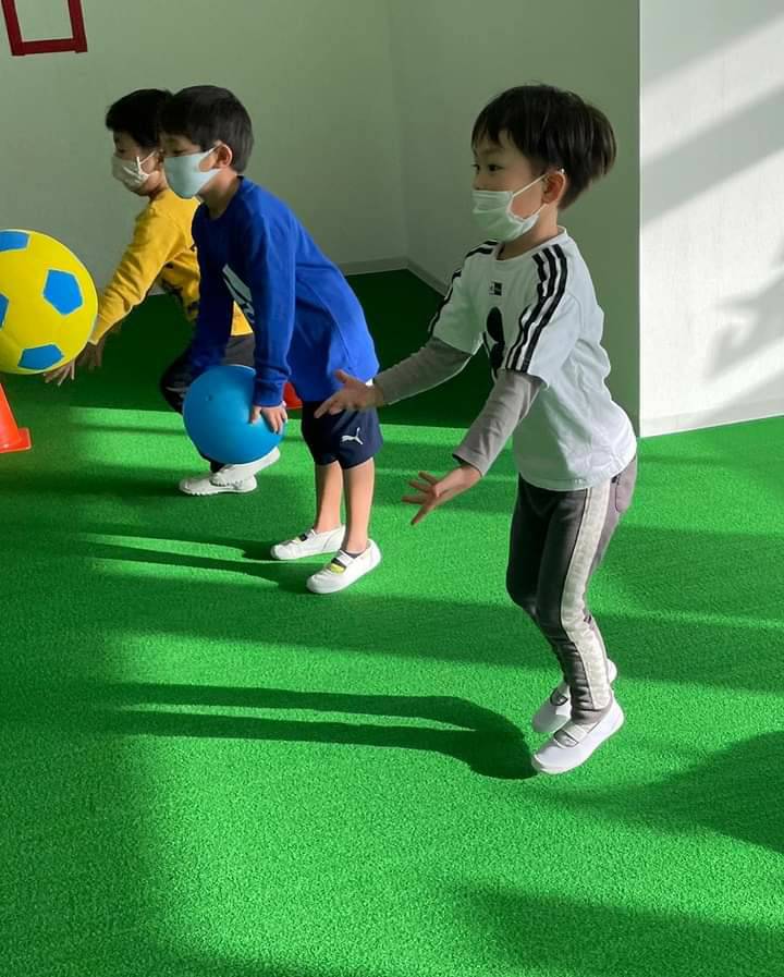 ボールをよく見る練習 はずんでいるボールを取る練習 ボールを相手がとりやすいように投げる練習など🔵 ボール遊びは身近で、好きな子は多いです🟢 早く教室に到着すると、授業が始まるまでの間はコーチたちとボ...