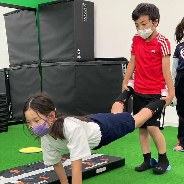 身体を支える腕の力を鍛える運動です! ペアの子の脚を持ち、もう一人は手だけで前に進みます💨 腕の力が弱いと、つぶれてしまいます。 また手歩きの子が早すぎて、持っている子がついていけないこともあります。...