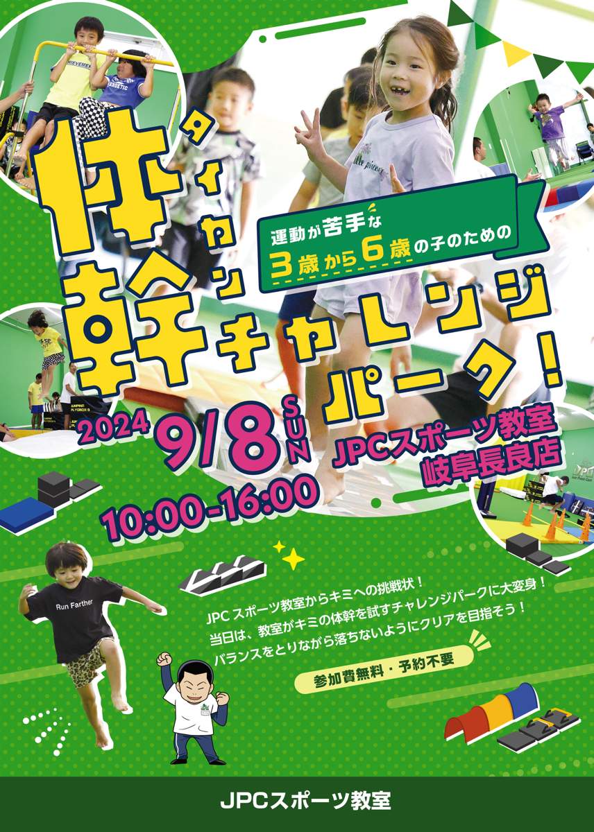 こんにちは! JPCスポーツ教室岐阜長良店のみずコーチです! 2025年10月19日(日)にわんぱくアドベンチャーを開催いたします!!! 実際に授業で使用している器具を使い、その日限定の特別なコースを...