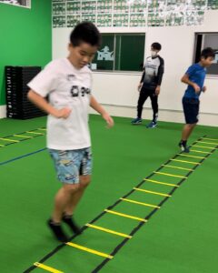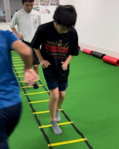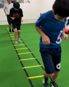 はしご状の形をした器具を用いて行うラダートレーニングは、動作の素早さや瞬発力などの運動神経を鍛える目的で行います。