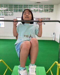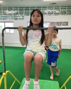ぶら下がりは、小学生のことたちは鉄棒から顔が出せるようになりました