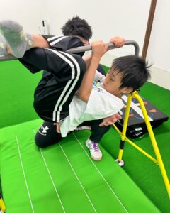 そのため、「ぶたの丸焼き」では、鉄棒運動の技ができるようになるための体の使い方、力の入れ具合などを楽しく遊びながら学ぶことができます。