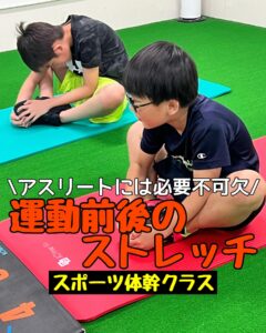 運動前にしっかりと筋肉を伸ばして柔軟性を上げておくと怪我もしにくいですし、身体の可動域が広がるので運動能力も自ずと高まります。