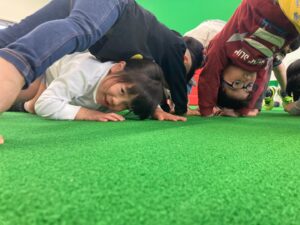 トンネルくぐりは、その子のトンネルに合わせて、いろいろな身体の使い方で移動することを楽しみます!