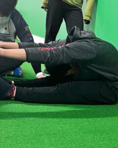 次回は開脚時に、床におでこがつくことを目標にしよう