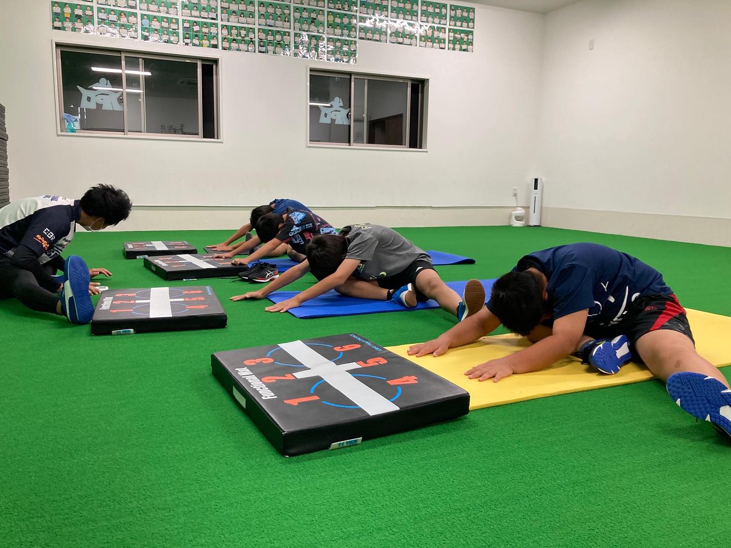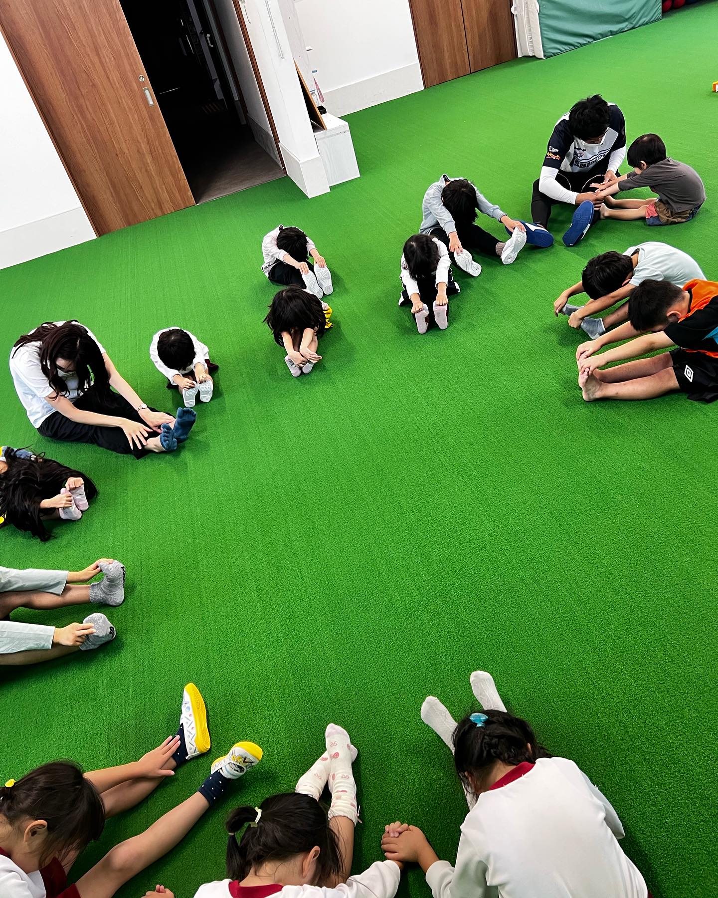 授業前は、みんなで準備体操! 膝を伸ばして、つま先タッチ 仲良しトリオは、手を繋いで離さない 胸と腿が近づくように、毎日継続して練習しよう 無料体験実施中 【体育教室】 平日 16:30〜/17:45...