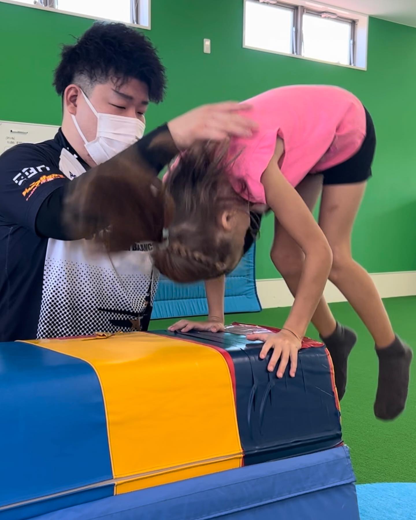 マットの上でやる前転より難易度UP 跳び箱は高さがあるため、ジャンプ力が必要になります! 踏切時に、思いっきりグージャンプができると次の動作につながりやすいです * 無料体験実施中 【体育教室】 平日...