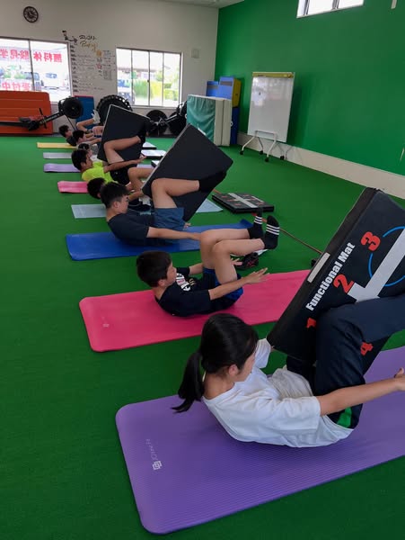 年齢、競技、通っている時間が異なる子たちが集まってグループレッスンをしています! そのため、それぞれに合わせて負荷を調整します 正しい姿勢でできた子から、負荷を増やしていきましょう! ▼無料体験実施中...