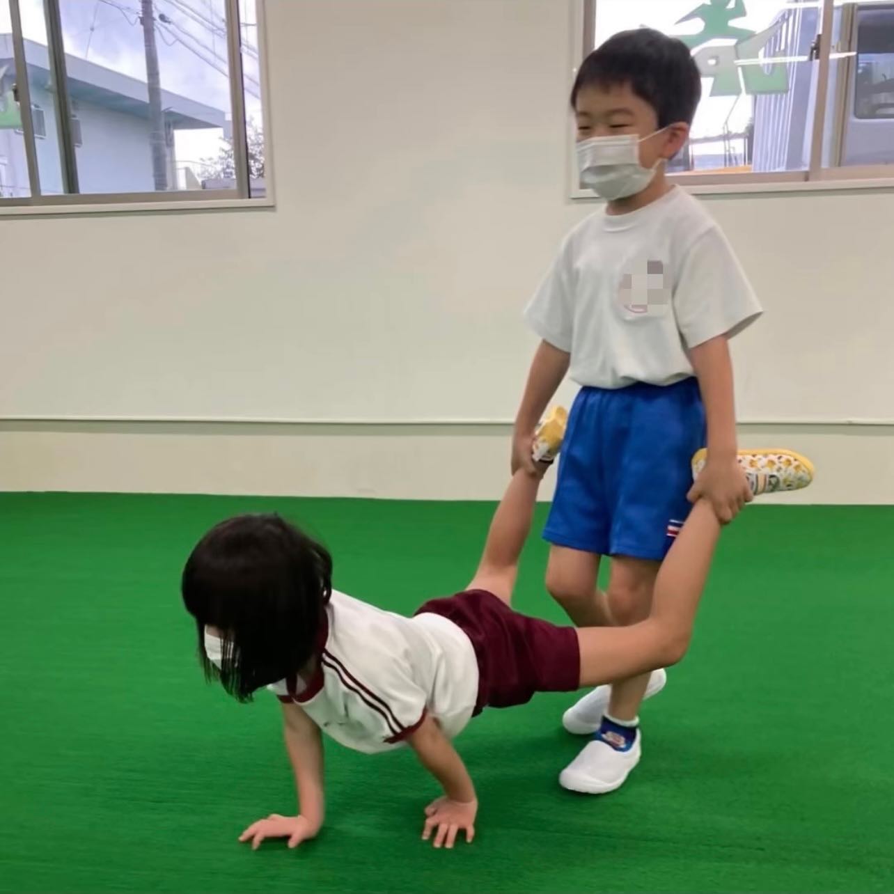 * 手と足だけの力を使って、身体全体を支えます。 コーチのお手本を見て真似る👍🏻 子どもたちは、よく見ているため👀、 言葉の説明がなくても同じ形を作ることができます✨ 家でも毎日5秒キープして、 腕や...
