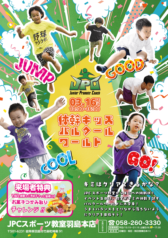 3月16日(日)JPCスポーツ教室羽島店【体幹キッズパルクールワールド開催】