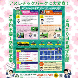 JPCスポーツ教室碧南店で、4月20日(日)に「春の無料見学会」を開催します🎉
