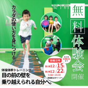 実際の教室で使用する器具を用いて、体幹に特化した体操教室のレッスンを体験していただけます🥳