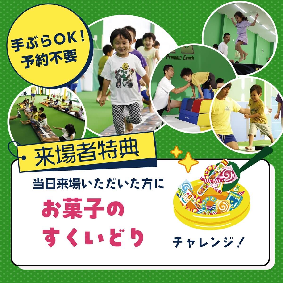 教室内を自由に誰でも遊べるチャレンジパークとして開放し、使用器具の展示や各コースの紹介など、スポーツ教室の魅力を余すところなくご紹介します。