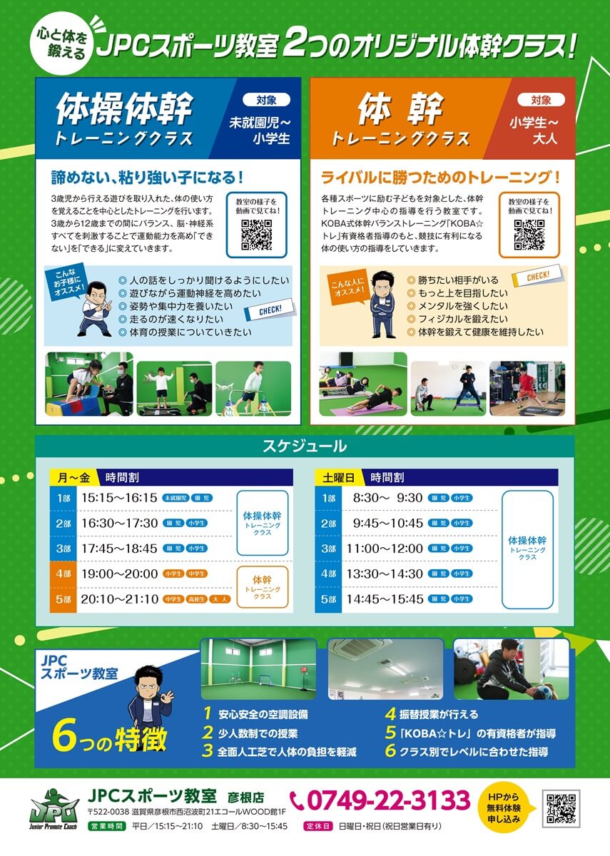 体幹に特化したスポーツと体操の教室「JPCスポーツ教室彦根店」で大人気の内覧会イベントを開催します。
