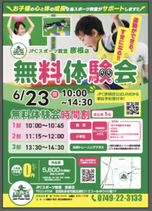 こんにちは! JPCスポーツ教室彦根店のてっきーコーチです🌈   きたる6/23(日)に無料体験会が開催されます😊😊😊   開催日まであと【4日】となりました!   ご予約も少しずつ増えてきております...