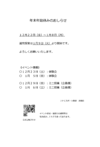年末年始のおしらせ(2023年12月22日~1月8日)