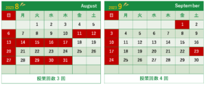 8月29日~9月1日、9月23日は休校日となります。