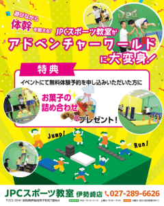 体幹に特化した2歳半から始められるスポーツ教室「JPCスポーツ教室伊勢崎店」で体幹キッズアドベンチャーを開催します。