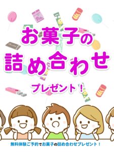 ご来場頂きまして、通常授業の体験予約をされた方にはお菓子の詰め合わせをプレゼント致します。🍭