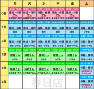 春日店のOPENまであと3週間となりました! 10月22日(日)に教室の見学会を開催して、 その翌日の10月23日(月)〜28日(土)に無料体験会を行います🎵 各クラス定員10名、先着順となります。お早めにご予約ください❗️ クラスは2つからお選び頂けます ・体幹を鍛えながら体の使い方を楽しく学ぶ【体幹・体操クラス】 ・スポーツのパフォーマンスを上げる為の【体幹トレーニングクラス】![]()