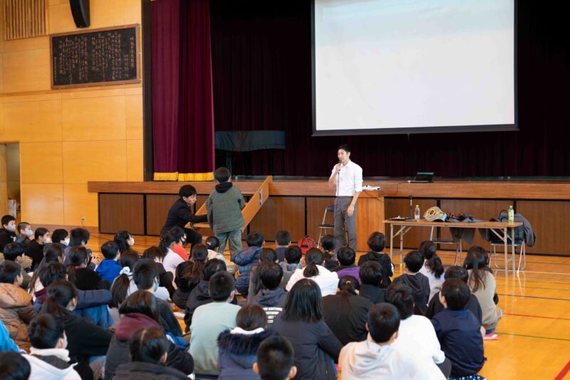 幼少期に家族が離散しながらも、多くの大人たちの助けを受け世界チャンピオンにまで上り詰めた瀧澤選手の経験談は、子どもたちの心に深く響いたようでした。子どもたちは真剣に彼の言葉に耳を傾け、講演後の質問コーナーもたいへん盛り上がっていました。