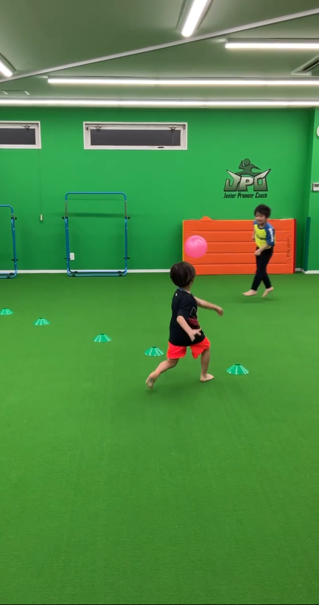 ▲小学校に上がったら、より体幹を鍛えることにつながるように、敏捷性を高めるアジリティメニューを多めに設定しています!これも、たのしい~!