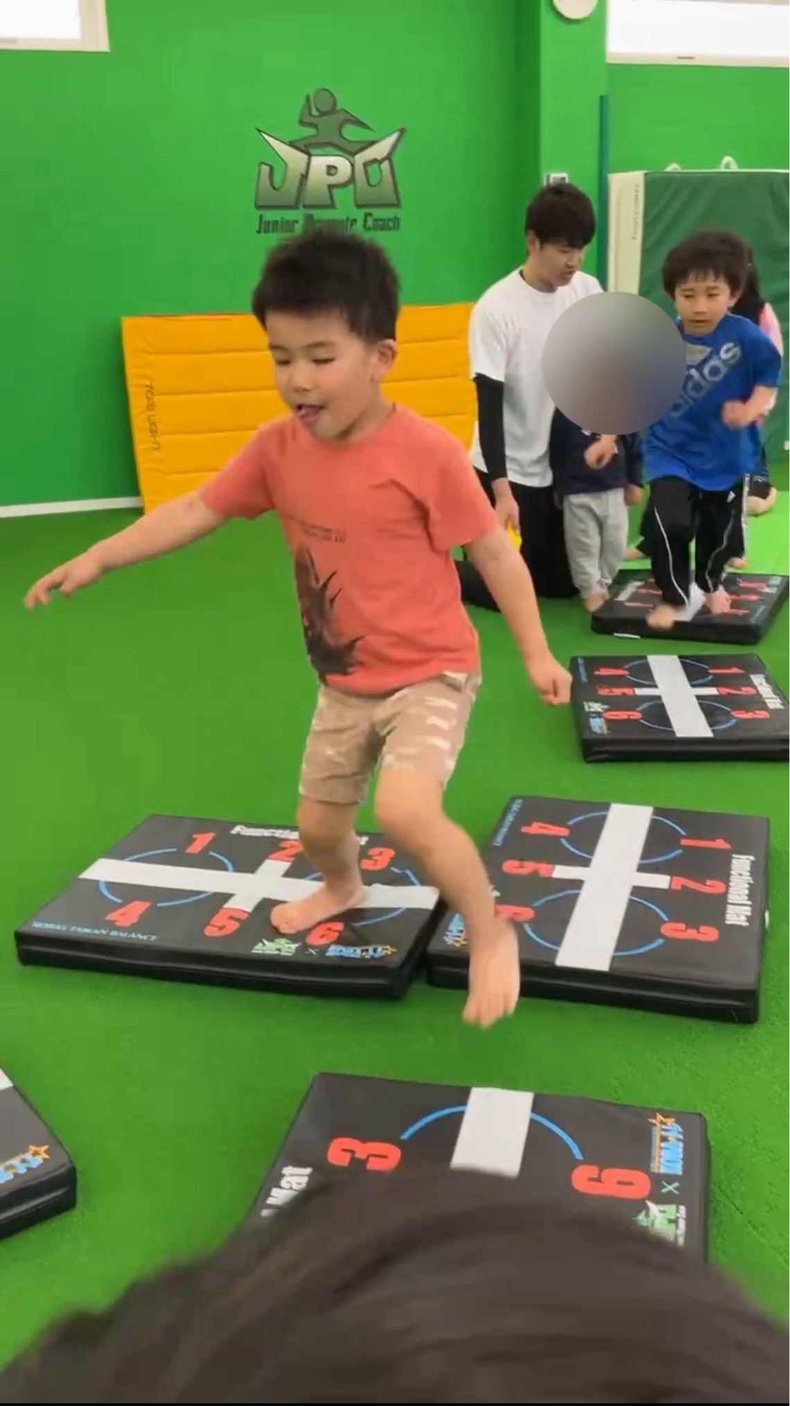 次はファンクショナルマットを使って、遊びながら体幹トレーニング!