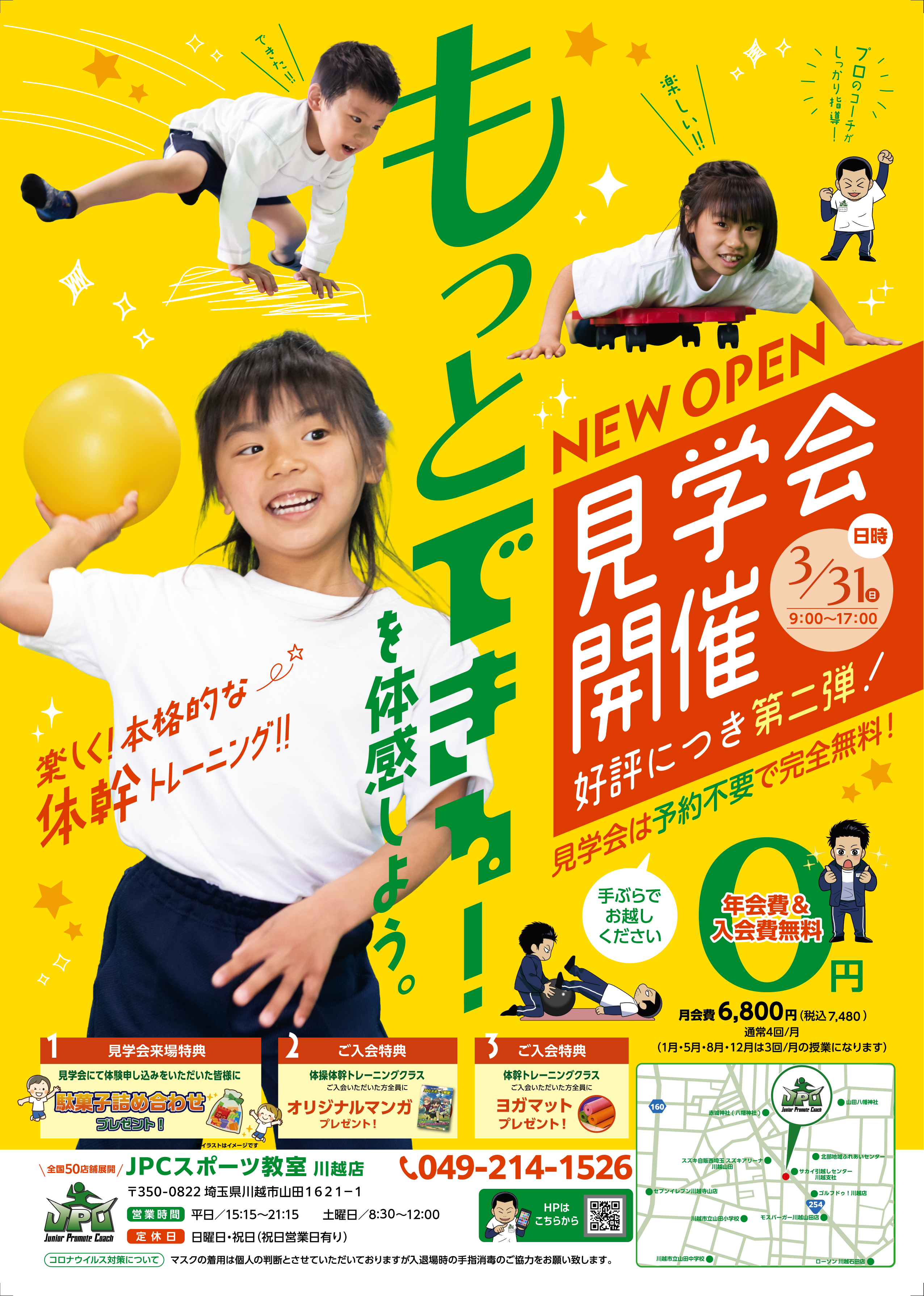 🕰️開催日時🕰️ 2024年3月31日(日)9時〜17時 予約不要!で手ぶらでお越しください♪   ⭐️開催場所⭐️ JPCスポーツ教室 川越店(←クリックでマップへ!) 駐車場有🚗   🚗臨時駐車場...