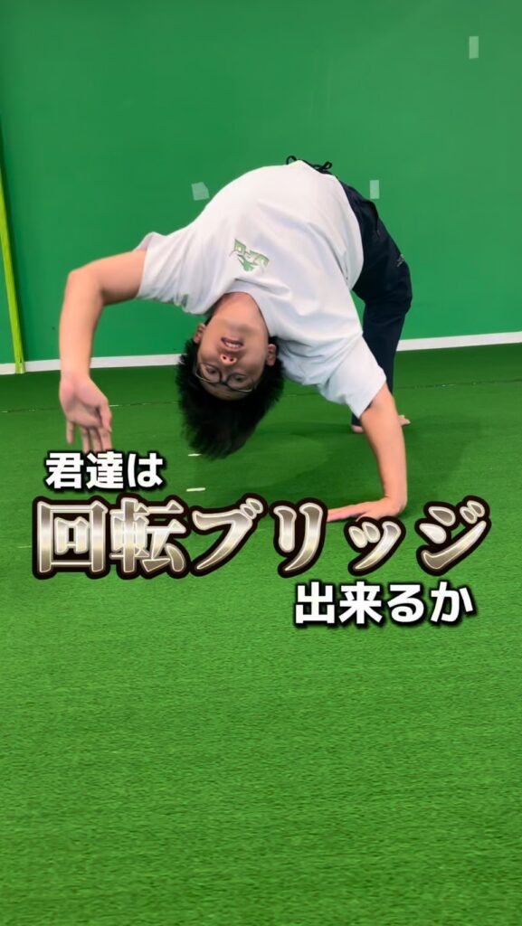 【君達は回転ブリッジが出来るか】このブリッジ難しいぞ🔥🔥🔥胸周りの柔軟性がないと絶対出来ません!胸郭の柔軟性はスポーツにおいてとても大切!!まずは回転ブリッジ出来るか試してみよう。出来なかったら、即胸...