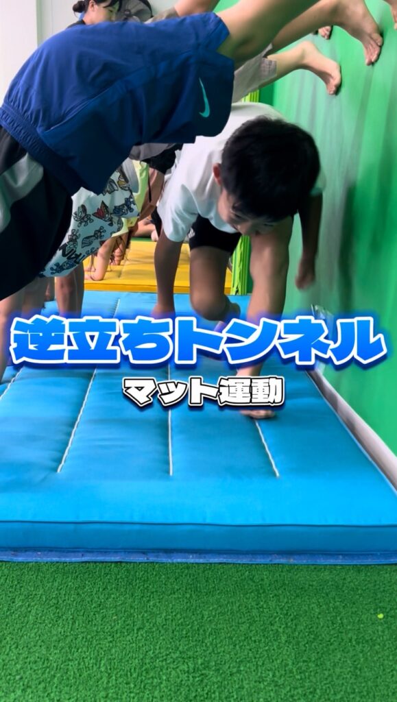 逆立ちトンネル🐽💤壁倒立ができるようになったら、逆立ちトンネルにチャレンジ!逆立ちチームとハイハイチームに分かれて行うよ✨逆立ちチームは崩れないように肘をピン!ハイハイチームはとにかく速く!!協力して...