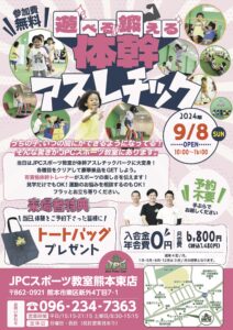 皆様、いつも JPCスポーツ教室 熊本東店をご利用いただき まことにありがとうございます! 表題のように ✅9月7日 土曜日より ✅第5部 14:15〜15:15 の開講が決定しましたので、お知らせし...