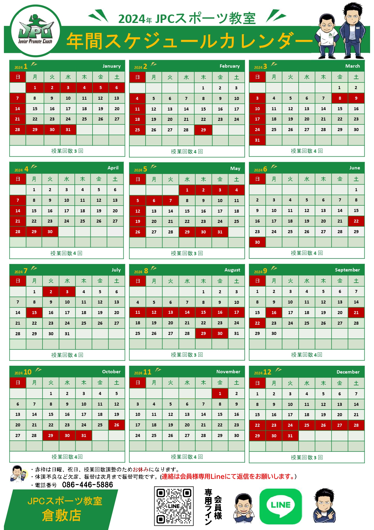 2026年カレンダー(JPCスポーツ教室倉敷店)