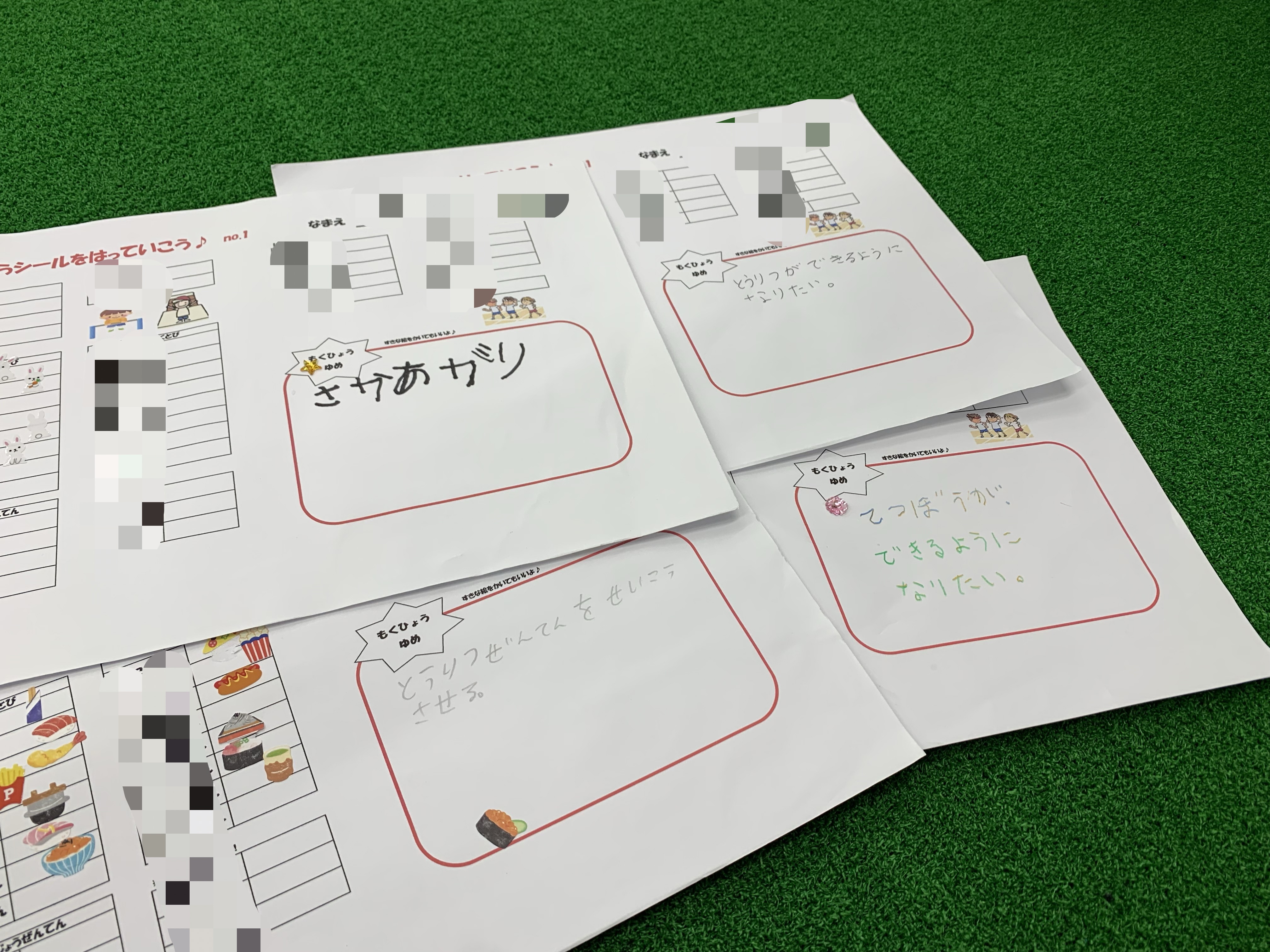 子供たちに、【みんなの夢・目標シート】を配りました。   出来たところに、シールを貼って自分だけのチェックシートを完成させよう!   また、シートには、子供たちの様々な目標が掲げられていました^_^ ...