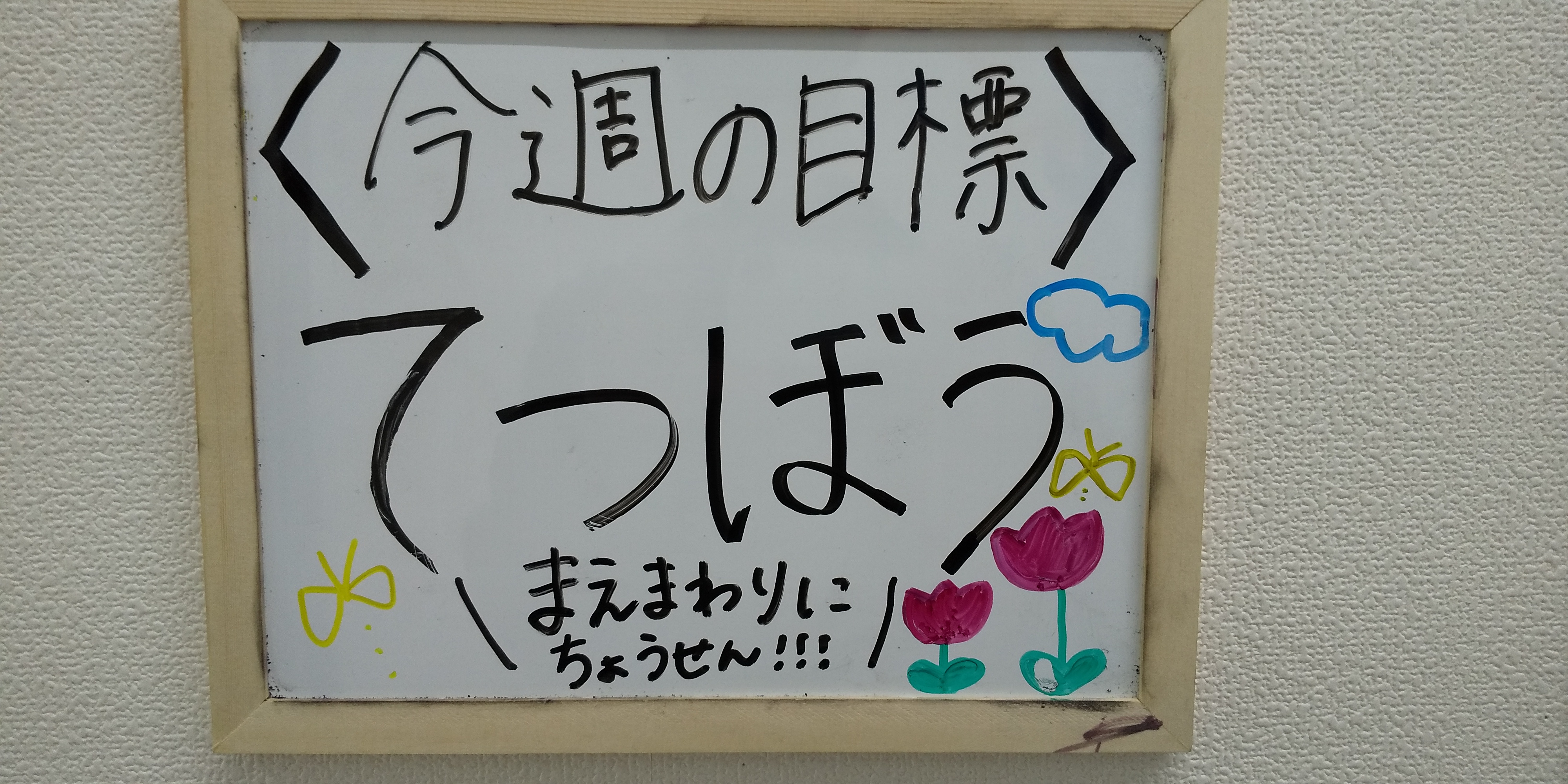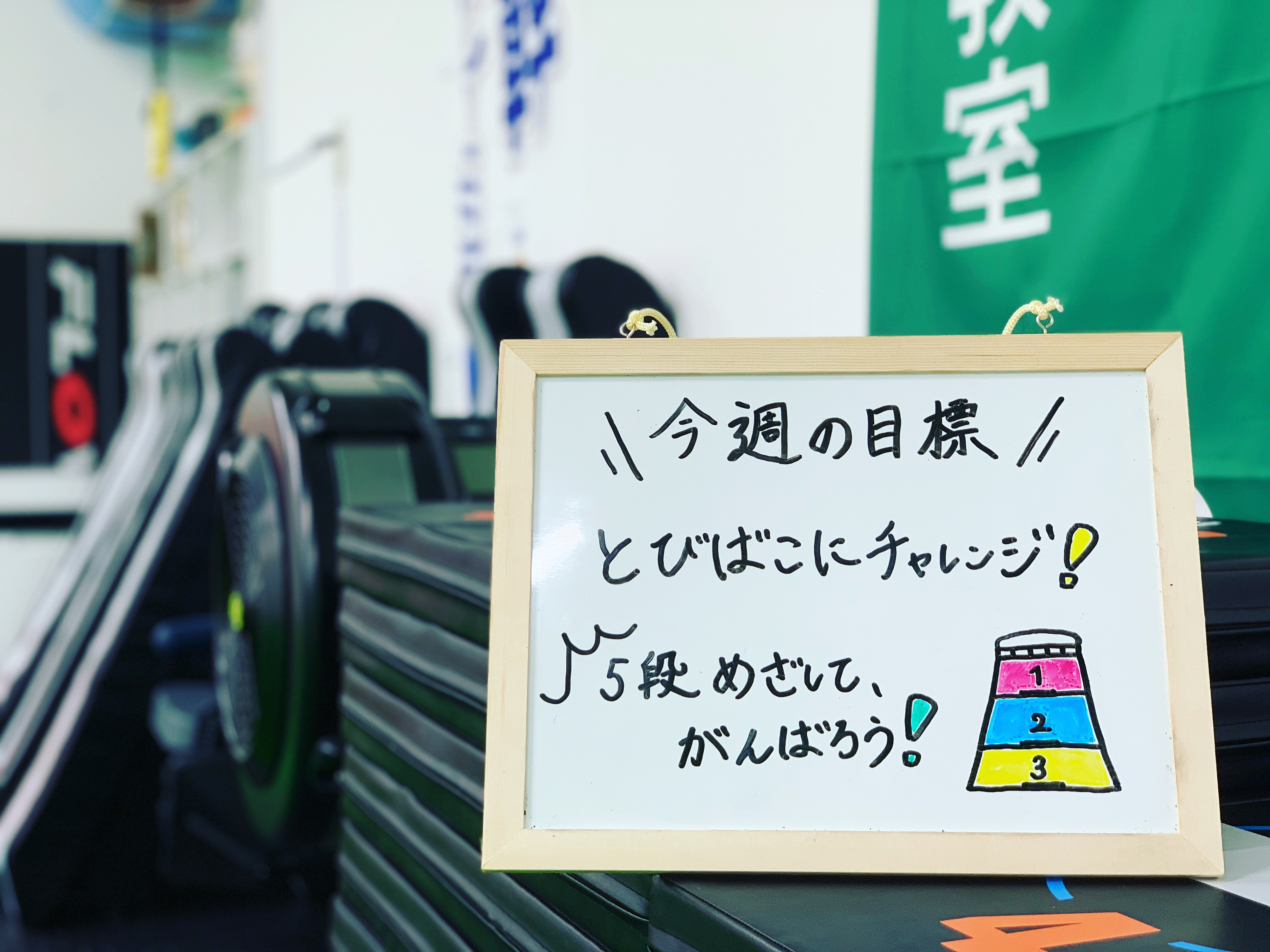 当教室では、毎週目標を決めています。   今週は、跳び箱です♪   目指せ5段🤩   上手に跳べるかな、、、?   ホワイトボードも教室のどこかにあるから、探してみてね!🤣